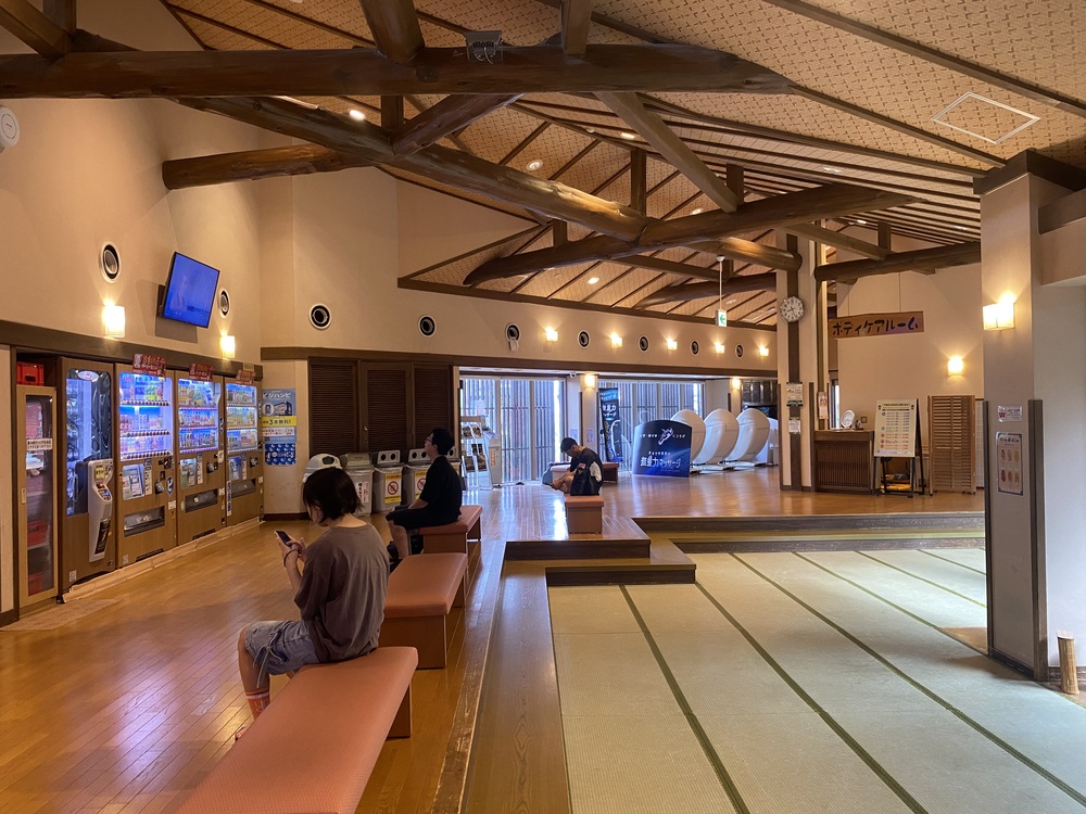 畳敷きの休憩スペースでは、横になってひと休みする人も多く、気がつけば時間を忘れて長居してしまう心地よさ。