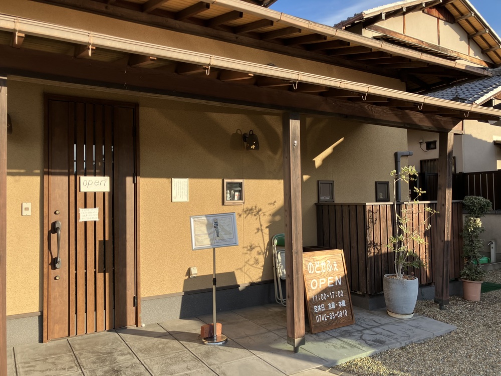 「のどカフェ」は、近鉄西ノ京駅から歩いて約13分。奈良県道9号の道沿いにあり、車でも電車でも訪れやすい場所にあります。