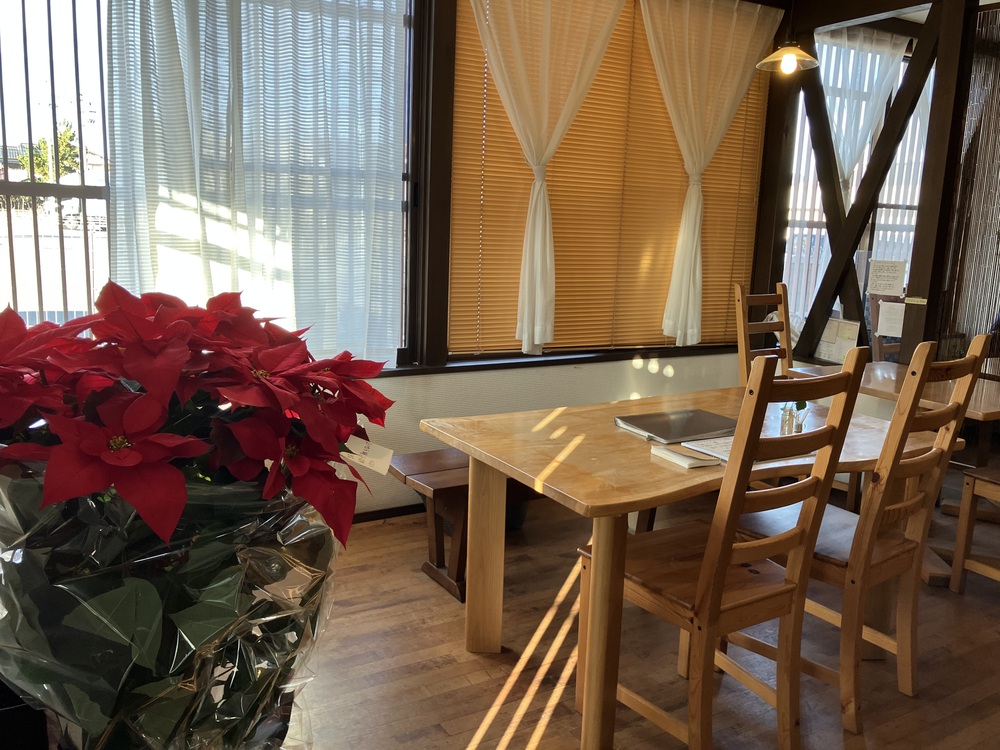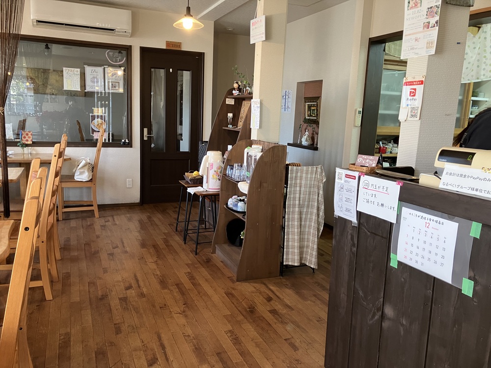 お店の扉を開けると、店内は木の床とシンプルな家具が中心です。にぎやかすぎず、静かすぎない空気感が心地よく、自然と気持ちが落ち着きます。