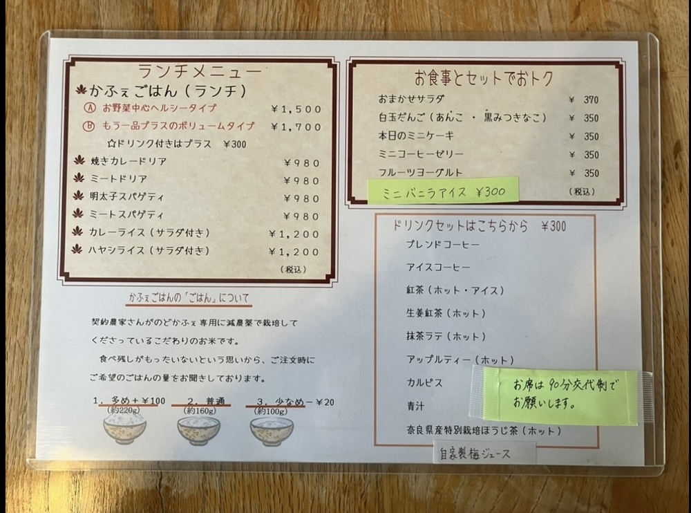 のどカフェのランチメニューにはドリアやスパゲティなどもありますが、特に注目したいのは「かふぇごはん」です。