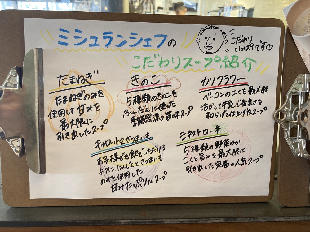 ミシュランシェフが作るおいしいスープをリーズナブルに楽しめるお店です。
