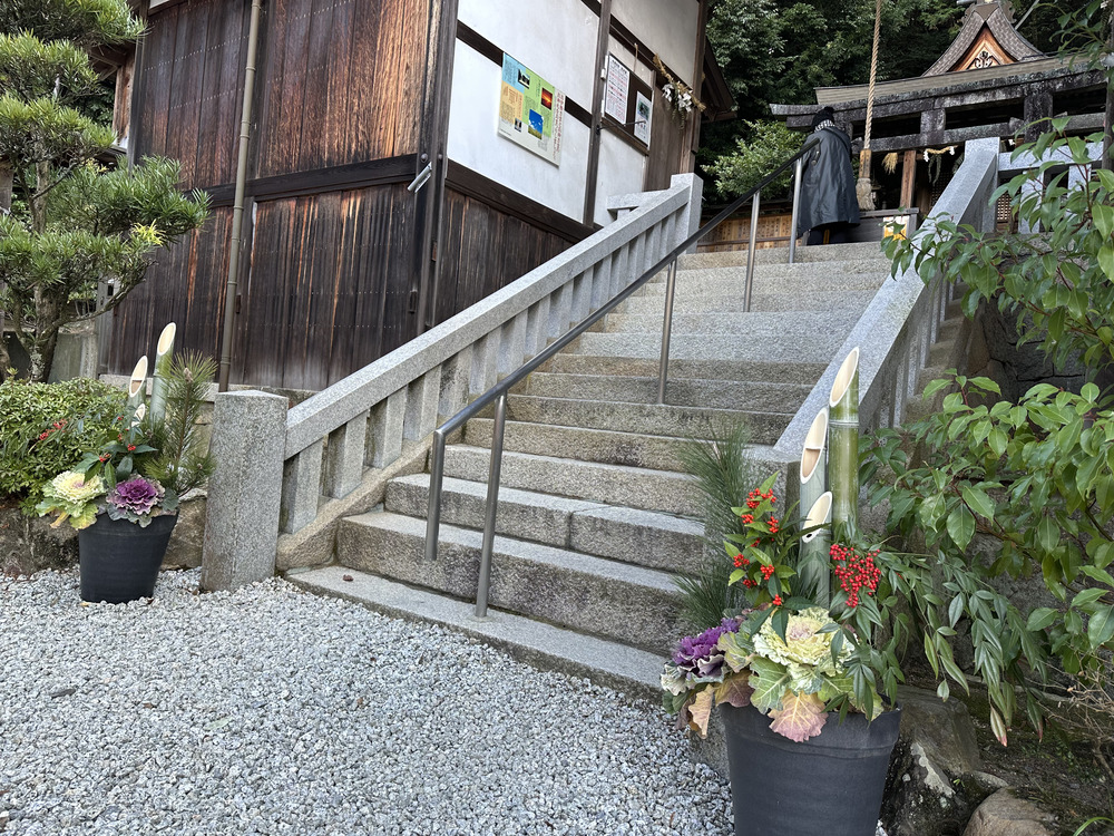 境内への道は、石畳の坂道や急な階段もあるため、参拝の際は歩きやすい靴がおすすめです。小さなお子さんと一緒の際には、階段では手をつないであげると安心ですよ。