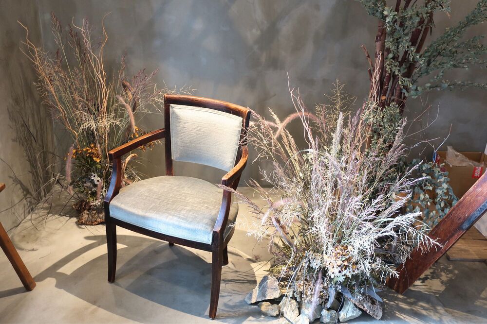 お店のドライフラワーやブーケ、雑貨などには、店主さんのセンスがきらり。日々の暮らしになじみつつ、ほどよい個性のある商品がそろっている印象でした。