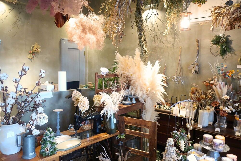 ドライフラワーから雑貨まで、選りすぐりの品が集まる