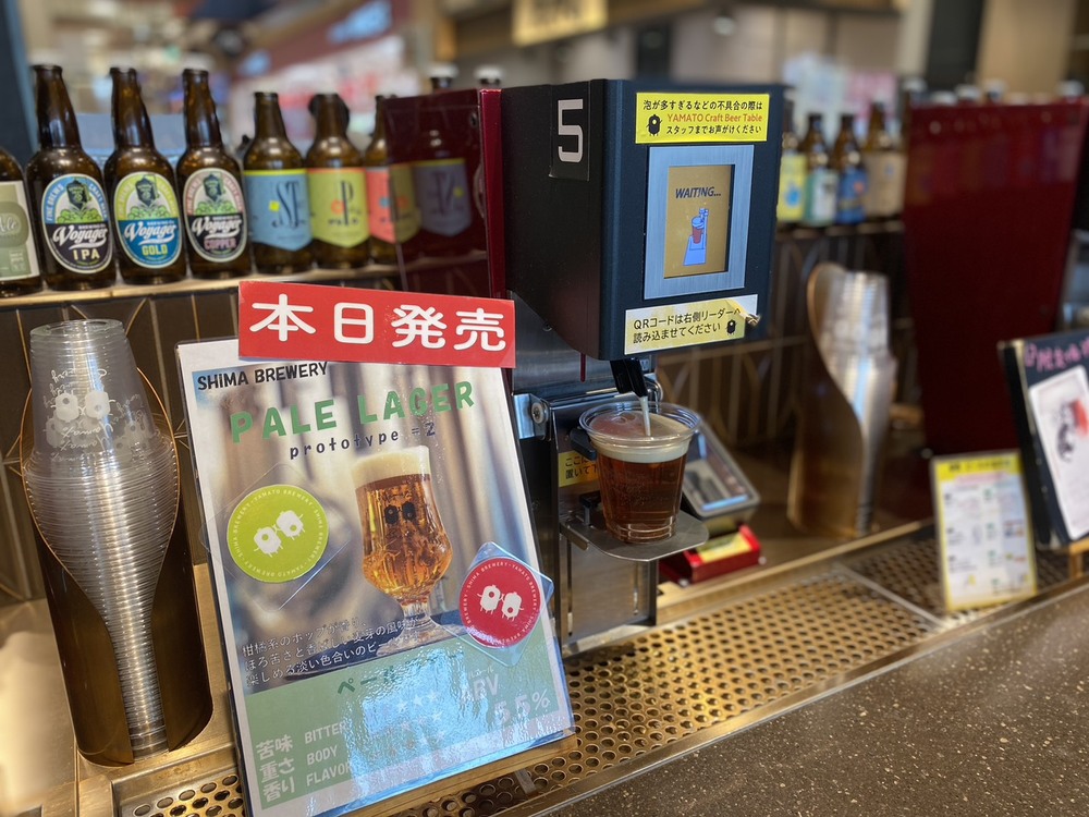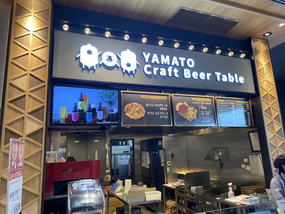 「Time’s Place 西大寺」の中のお店のひとつ「YAMATO Craft Beer Table」では、自動のビールサーバーで注がれるクラフトビールと、窯焼きPIZZAや ハンバーガーなどが楽しめます。