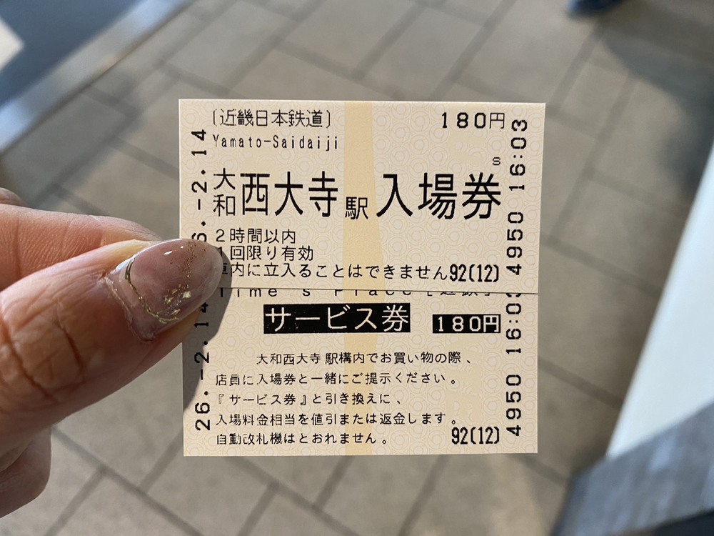電車を利用しない場合でも、駅ナカを利用することは可能です。今回は、サービス券付入場券を利用して入場しました。