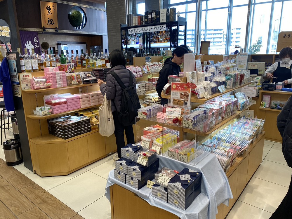 奈良の名産品や定番土産を取り扱う店舗もあり、急な手土産が必要になったときにも安心。