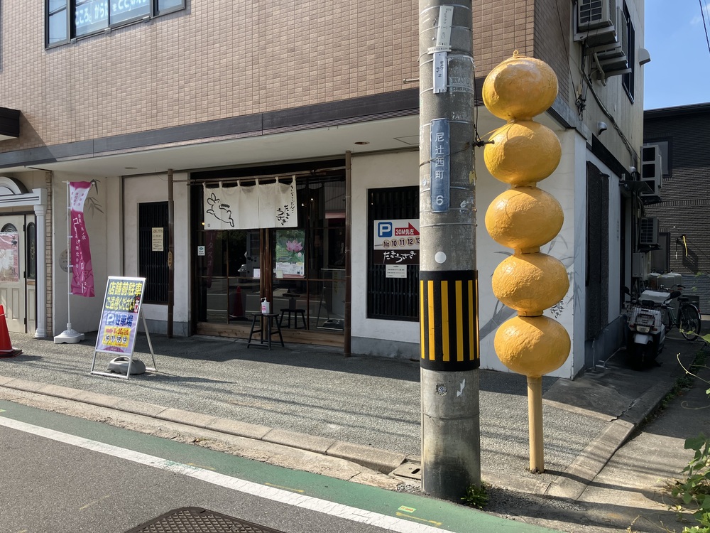近鉄尼ヶ辻駅から徒歩約2分の場所にある、昔からなじみのあるだんご屋さん「たまうさぎ」。たまうさぎは、きなこがたっぷりかかった小ぶりのだんごが食べられるお店です。