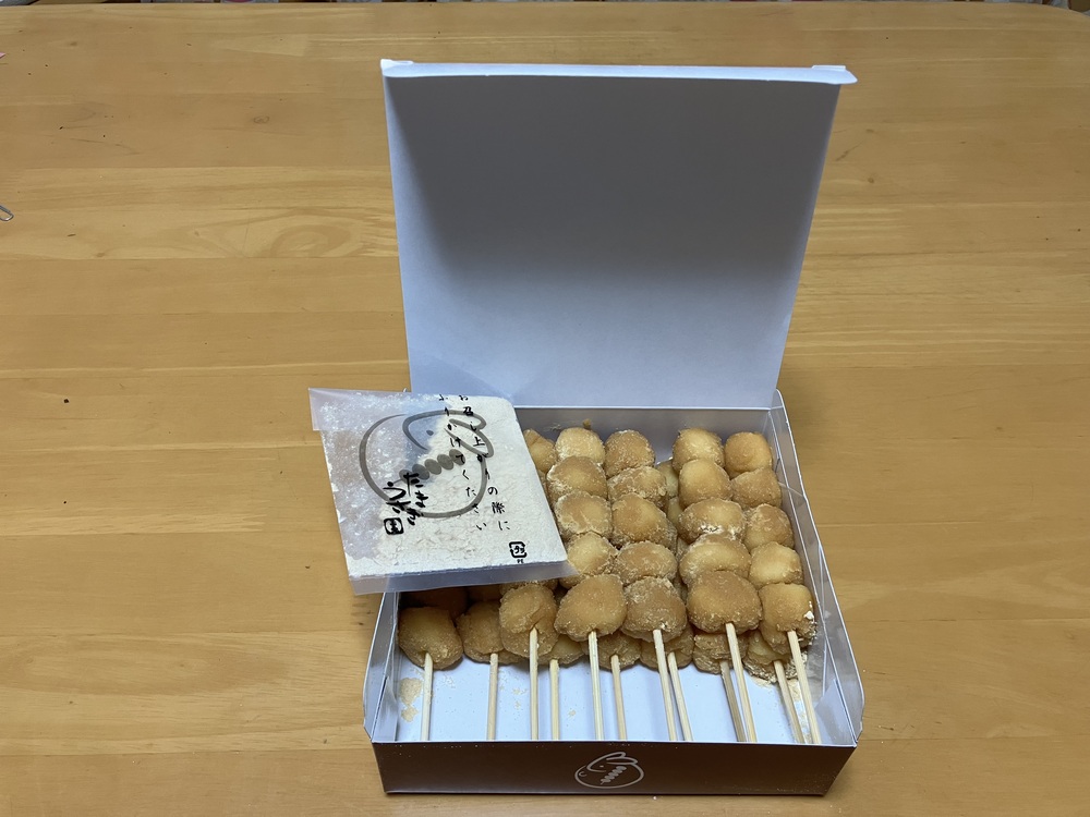 家族へのお土産に持って帰り、自宅でみんなで食べました。画像は12本入りのものです。箱の中には袋入りのきなこが入っており、好みできなこを追加して食べられます。